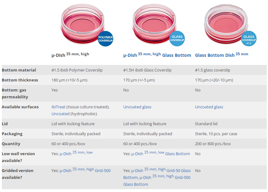 Comparison of the ibidi Dishes 35 mm
