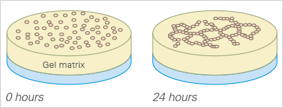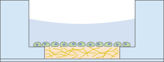 After the gel has been pipetted into the inner well and given time to solidify, the cells can be seeded on top of it for tube formation analysis. Due to the “well-in-a-well” technology, the amount of gel needed is reduced to only 10 μl per well, which is 10% of the amount used in regular multiwell plates.