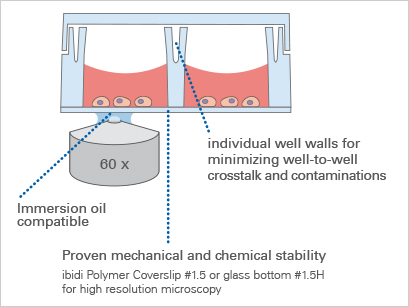 Find more information and technical details about the coverslip bottom of the ibidi chambers here.