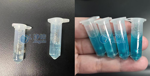上圖為完成后的研磨效果,細度超出老師的預期。之前是用手持式組織研磨儀做樣,交叉污染不好避免,通量也低,處理費時費力實驗周期非常長,所以選用凈信多樣品組織研磨儀代替人工處理。效率高,效果好。非常符合老師的需求。