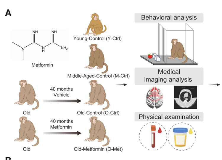 經過多年的努力,研究團隊取得了重要發現。他們證實,長期服用二甲雙胍可減緩靈長類動物的衰老進程,改善認知功能,并顯著降低多種衰老相關指標。這一成果為二甲雙胍在人類抗衰老治療中的應用提供了重要的理論依據。值得一提的是,該研究還構建了一個基于多維度生物標志物的靈長類衰老時鐘度量體系,為未來衰老干預措施的效果評估提供了新的標準。
