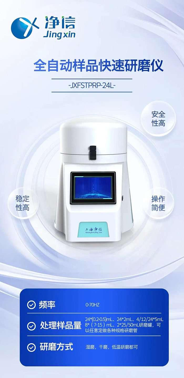 工欲善其事,必先利其器。在食品安全檢測領(lǐng)域,前處理的效率和精度直接影響著數(shù)據(jù)質(zhì)量與監(jiān)管效能。凈信全自動樣品快速研磨儀,以其在樣品前處理環(huán)節(jié)展現(xiàn)出的均勻、低溫、安全的優(yōu)勢,正成為眾多檢測實驗室提升紅薯粉條等食品農(nóng)殘檢測能力的得力助手。