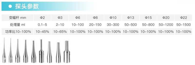 超聲探頭采用美標(biāo)TC4材質(zhì)的高純鈦合金,探頭形狀:錐形、鞭節(jié)形,發(fā)波形式:垂直超聲